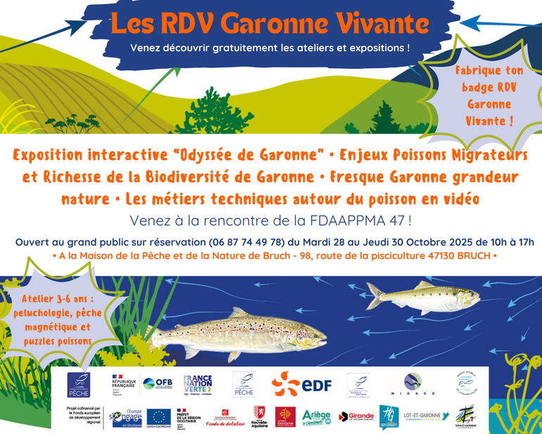 Financé par l'Agence de l'Eau Adour-Garonne https://eau-grandsudouest.fr et la FNPF https://www.federationpeche.fr, avec la partici^pation des FD de l'UFBAG.